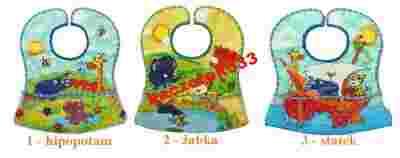 Śliniak kangurek posiada plastikową zewnętrzną warstwę pozwalającą na łatwe utrzymywanie w czystości, a także pod spodem został podszyty miękką bawełną frotte, chroniącą delikatną skórę dziecka. Posiada wygodne zapinanie na rzep. Specjalna kieszonka zatrzymuje resztki pokarmu, a odpięta dodatkowo zabezpiecza nóżki dziecka przed zabrudzeniem.