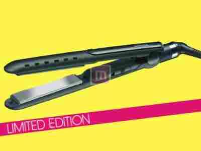 Prostownica z profesjonalnymi satynowymi płytkami i funkcją Wet & Dry.