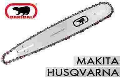 Profesjonalny zestaw marki Baribal dla pił spalinowych Husqvarna / Makita / Dolmar. Charakteryzuje się bardzo wytrzymałym łańcuchem oraz wzmacnianą prowadnicą o długości 18" (45 cm ). Pasuje do modeli o skoku zębatki 0,325".
