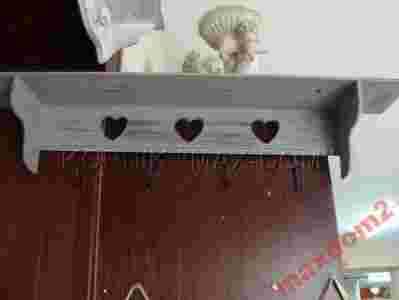 Stylowy i niepowtarzalny wieszak wykonany jest w całości z drewna , pomalowany dwiema warstwami ekologicznej farby odpornej na warunki atmosferyczne . Posiada 4 haczyki do zawieszenia np. kluczy ,ściereczek itp.  Stylowo poprzecierany , ozdobiony serduszkami  będzie stanowił doskonały dodatek do każdego wnętrza a w szczególności do wnętrz w stylu PROWANSALSKIM , SKANDYNAWSKIM , FRANCUSKIM , SHABBY CHIC , VINTAGE itp.
