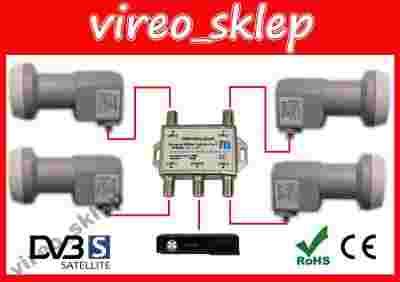 Przełącznik torów przełącza sygnały (również składową stałą) z wejścia 1,2,3,4 na jedno wyjście TUNER. Umożliwia podłączenie czterech konwerterów do jednowejściowego tunera. Sygnałem sterującym jest sygnał DiSEqC o poziomie minimum 1.0 przesyłany przewodem koncentrycznym od strony tunera. Przełącznik w metalowej obudowie do stosowania wewnątrz budynku.