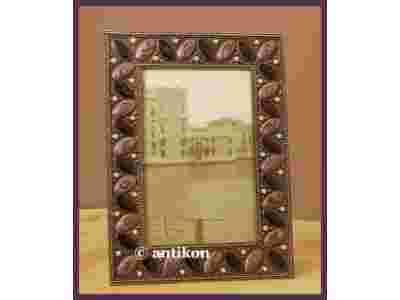 Przepiękna prostokątna ramka wysadzana perełkami, które są wyśmienitą imitacją kamieni szlachetnych. Znakomicie ozdobiona owalnymi oczkami z masy perłowej o dwóch odcieniach bordo a także obrzeżona wspaniałym ornamentem perełkowym. Ramkę wykonano z metalu, z wielką dbałością o detale. To niezwykłej urody cudeńko jest stylowym, wyrafinowanym elementem dekoracyjnym, który upiększy każde pomieszczenie i będzie godną oprawą dla fotografii bliskiej osoby. Współczesny wyrób francuski. Ramka jest solidna oraz ciężka. Stan przedmiotu bardzo dobry.