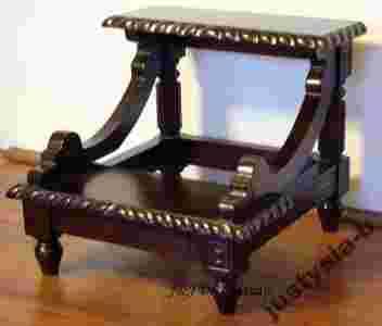 J&J Decor Studio zaprasza na aukcje! Przedmiotem aukcji są cudowne schodki biblioteczne 2-stopniowe, wykonane w całości z litego drzewa mahoniowego w kolorze ciemnobrązowym (ciemny kasztan delikatnie przechodzący w mahoń). Schodki są bardzo solidnie i precyzyjnie wykonane. Schodki są nowe.