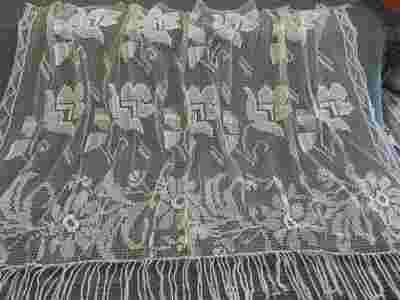 Przedwojenna, kołkowa firana ecru- secesja