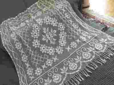 Przedwojenna, kołkowa firana - róże - secesja