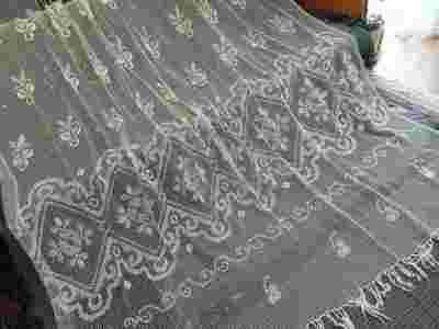 Przedwojenna kołkowa firana stokrotki - ecru