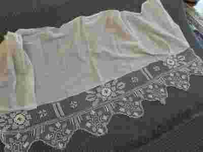 Przedwojenna, kołkowa firaneczka ecru - róże