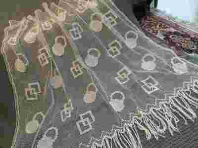 Przedwojenna kołkowa firanka ecru- Art Deco