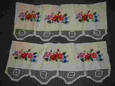 Przedwojenna para firanek z ręcznymi haftami