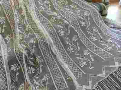 Przedwojenna para kołkowych firanek - lilie