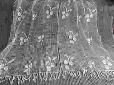 Przedwojenna para kołkowych firanek w winogronka