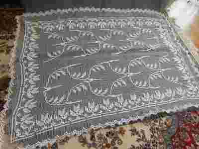 Przedwojenny kołkowy obrus w ząbki