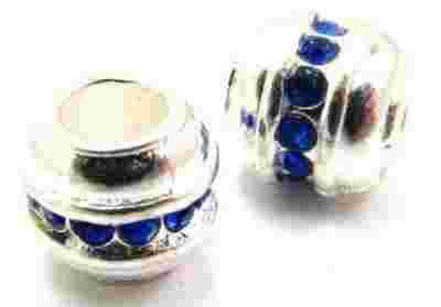 Koralik modułowy - przekładka posrebrzana w kształcie beczułki z kryształkami Capri Blue dookoła