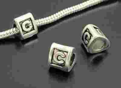 Koralik modułowy - przekładka posrebrzana o trójątnym kształcie z wygrawerowaną literką C