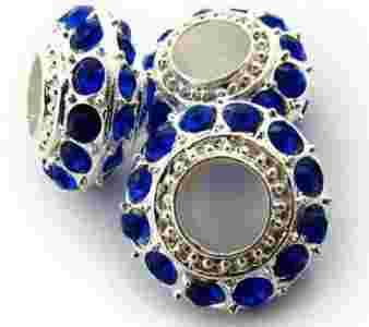 Koralik modułowy - przekładka posrebrzana o kształcie oponki z kryształkami Capri Blue