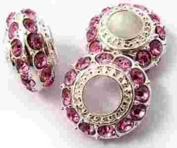 Koralik modułowy - przekładka posrebrzana o kształcie oponki z kryształkami Rose
