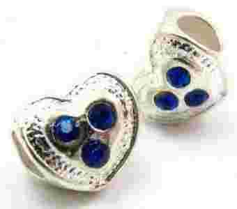Koralik modułowy - przekładka posrebrzana w kształcie serduszka z kryształkami Capri Blue
