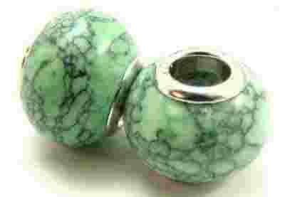 Koralik modułowy - przekładka posrebrzana z howlitem kwiatowym zielonym