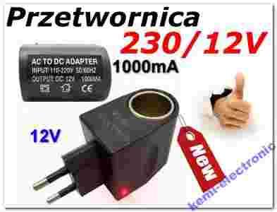 Przetwornica 230V 12V 1000mA cygaro adapter GPS