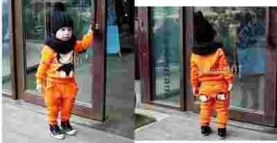 Uroczy komplecik z małpką w kolorze pomarańczowym.