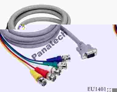 Wysokiej jakości przewód monitorowy D-SUB ( VGA ) 15 pin na 5 x BNC umożliwiający podłączenie komputera z monitorem lub telewizorem wyposażonym w złącze BNC. Zalecany do monitorów lub telewizorów o dużych ekranach oraz do projektorów.