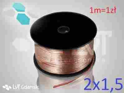 PRZEWÓD KABEL GŁOŚNIKOWY 2x1,5mm OFC HQ 1m-1zł