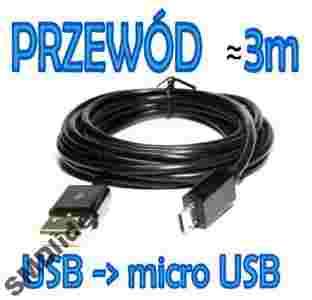 PRZEWÓD KABEL USB typ A WTYK - micro USB WTYK około 3m