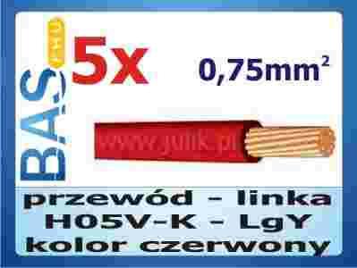 Przewód _ linka 1x 0,75mm czerwony _ H05V-K _ 5m