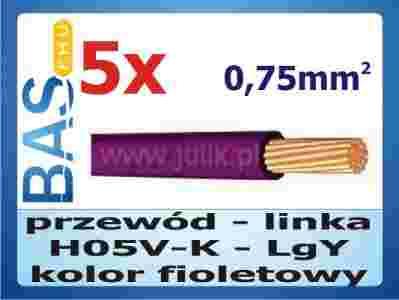 Przewód _ linka 1x 0,75mm fioletowy _ H05V-K _ 5m