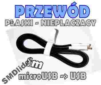 PRZEWÓD KABEL NIEPLĄCZĄCY PŁASKI USB typ A WTYK - micro USB WTYK - około 1 m - płaski wtyk USB