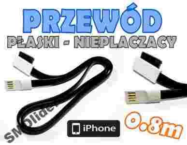 PRZEWÓD KABEL NIEPLĄCZĄCY PŁASKI USB typ A WTYK - iPhone 3G 4G iPad - 0.8 m - płaski wtyk USB