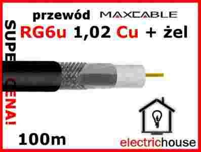 Przewód RG6 Cu + żel | MAXCABLE | 100m | miedź |