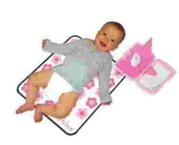 Idealny zestaw na każde wyjście z maluchem. Pojemnik jest jednocześnie podajnikiem na mokre chusteczki i schowkiem na przewijak, pieluchę a nawet mały krem.