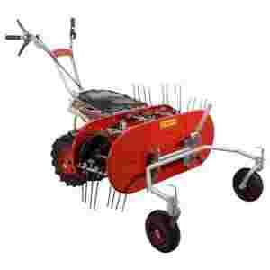 Mikrociągnik z przystawką przewracarko-zgrabiarką, służy do przerzucania skoszonej trawy i do wysuszenia jej. Szerokość robocza 90 cm i regulacja wysokości roboczej powoduje, że przewracarka jest urządzeniem przeznaczonym na różne tereny. Dzięki kołom przednim jezdnym w przystawce, całe urządzenie - mikrociągnik i przystawkę prowadzi się wygodnie i komfortowo. Mikrociągnik posiada już przekładnie hydrostatyczną, możemy płynnie zmieniać jazdę, nawet jazdę do tyłu.