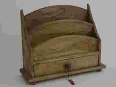 Przedstawiam Państwu ładny przybornik biurkowy wykonany z egzotycznego, woskowanego drewna (lite drewno) w kolorze jasnego brązu. Na całym przyborniku są dokładnie uwidocznione słoje drewna, które dodają przedmiotowi dodatkowego uroku. Przybornik posiada szufladkę oraz 2 przegródki. Szufladka pomieści różne drobiazgi (długopisy, ołówki, spinacze....) ,a w przegródkach znajdzie się miejsce na małe dokumenty (listy. druki....).Przybornik jest wystarczająco pojemny aby można było z łatwością utrzymać porządek na biurku.