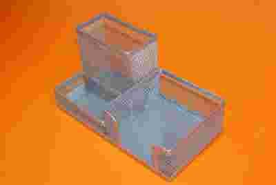 PRZYBORNIK BIURKOWY METALOWA SIATKA SREBRNA