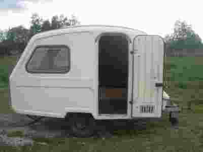 Przyczepa w stanie dobrym, wszystkie okna nieuszkodzone, rama ocynkowana, opony w stanie średnim. Z wnętrza przyczepy została usunięta tapicerka i wymieniona podłoga na sklejkę 24 mm. Umeblowanie przyczepy jest kompletne, brak górnych półek, na załączonym zdjęciu zniszczone półki, które mogą posłużyć za szablon. Do wyposażenia dołączam stelaż wraz z przedsionkiem przeznaczony dla tego modelu, instalacja elektryczna sprawna, NOWE lampy.