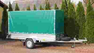 Oferujemy przyczepę samochodową jednoosiową z plandeką o wymiarach 1,60 x 3,00 (wymiar skrzyni)