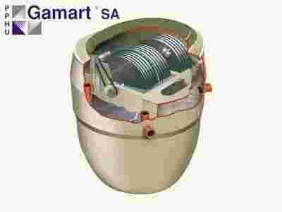 zbiornik wykonany z kompozytu GRP (żywice poliestrowe wzmacniane włóknem szklanym), tworzywa mocnego, lekkiego, odpornego na szereg substancji chemicznych, a co najważniejsze – wodoszczelnego. Gwarancja na zbiornik 10 lat, na wyposazenie 2 lata.