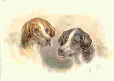 PSY MYŚLIWSKIE akwarela z XiX wieku