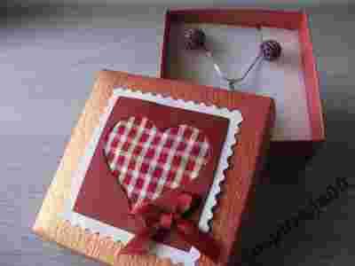 mam do sprzedania ŚLICZNIE OPAKOWANIE RĘCZNIE ZDOBIONE NA BIŻUTERIĘ pudełko błyszczące bordowo-złote z sercem w kratkę z materiału