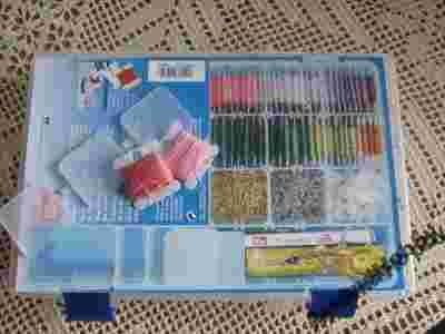 Na kołnierzu sortera możemy umieścić informację o numerze muliny. Nici nie plączą się. Sortery z nawiniętą muliną układamy wg kolorów w plastikowym pudelku, z ruchomymi (tj.ustawianymi wg naszego życzenia) przegródkami... komfort i przyjemność : ).