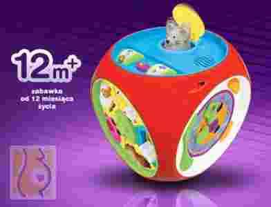 Pudełko uczydełko - to kostka pełna niespodzianek, światełek oraz dźwięków. Dzięki niej dziecko z pewnością rozwinie swoje umiejętności oraz wiele się nauczy. Zabawka rozwija zdolności manipulacyjne, głównie małą motorykę, a także umożliwia poznawanie zależności przyczynowo-skutkowych. Każda z 6 stron, to nowa interesująca zabawka: