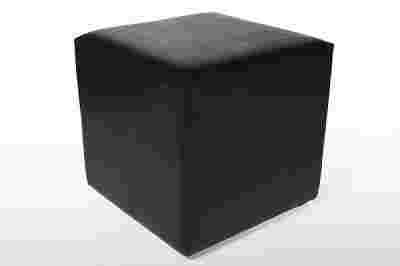 Sześcienna forma brązowej eko-skóry. Pufa wpływa relaksująco na zmęczone nogi po ciężkim dniu pracy.