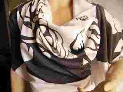2.Bardzo ładna mięka dzianina wiskozowa /chyba bawełniana/ dośc gruba jak na dzianine,ładnie śię układa Raportowa - szłak poprzek bełki .Dł. raporu 0,96 m.Szer.165 cm. Kolory - biały i jasny szary