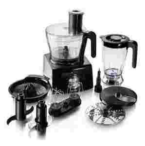 Ten robot kuchenny posiada końcówkę do mieszania i wyrabiania gęstego ciasta, którą można myć w zmywarce. Nóż ze stali szlachetnej pozwala na łatwe siekanie mięsa i warzyw. Dwie metalowe tarcze umożliwiają szatkowanie na drobno lub na średnią grubość oraz ucieranie produktów żywnościowych. Nietłukący się blender o pojemności 1,5 litra zapewnia dokładne miksowanie, kruszenie i mieszanie składników. Wyciskarka do cytrusów gwarantuje bezproblemowe wyciskanie owoców cytrusowych. Trzepaczka idealnie ubija składniki i miesza rzadkie ciasto.