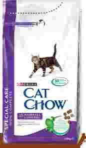 Purina Cat Chow Hairball Control to karma przeznaczona dla kotów szczególnie narażonych na powstawanie kul włosowych. Regularnie podawana pomaga oczyszczać układ pokarmowy z odkładających się w nim włosów.