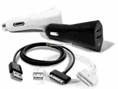 PURO Car Charger - Ładowarka USB + kabel (biały)