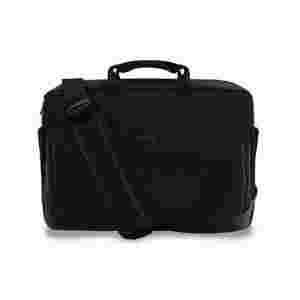 Wytrzymała i bardzo poręczna torba komputerowa z zewnętrznym przedziałem na akcesoria oraz mocowaniem trolley. Kompatybilna z notebookami PC i Apple. Do noszenia w ręku, jak i na regulowanym pasku naramiennym mocowanym do klamer po bokach torby.
