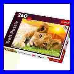 Lwiątko Puzzle 260 elementów z obrazkiem słodkiego lwiątka. Po ułożeniu powstanie obrazek o wymiarach 60x40cm. Wysoką jakość, nasycenie kolorów i bezpieczeństwo układania zapewnia kalandrowany papier odbijający światło i wykorzystanie materiałów ekologicznych.